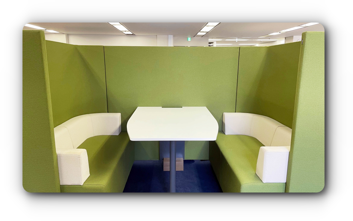 - コロナ禍で急増したWebミーティングの専用スペースを大小8か所設置。